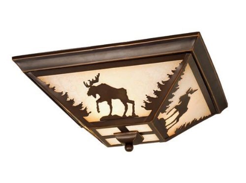 This collection is just the thing for your summer house or log cabin or maybe you just want a rustic look for your home. The rustic Yellowstone collection features various wildlife motifs including moose, deer, bear and evergreen trees. The indoor fixtures come in a Burnished Bronze finish with Amber Flake Glass and include chandeliers, pendant lighting, mini pendant lighting, semi flush mount ceiling lighting, flush mount ceiling lighting, ceiling fans, ceiling fan light kits, swing arm wall lamp lighting, wall sconce lighting and bathroom vanity lighting. The outdoor fixtures come in a Burnished Bronze finish with White Tiffany Glass (clear seeded glass in the small wall lamp lighting) and include wall lamp lighting, flush mount ceiling lighting, pendant lighting and post lamp lighting (post not included). Scroll down to view all the related lighting products for this item.